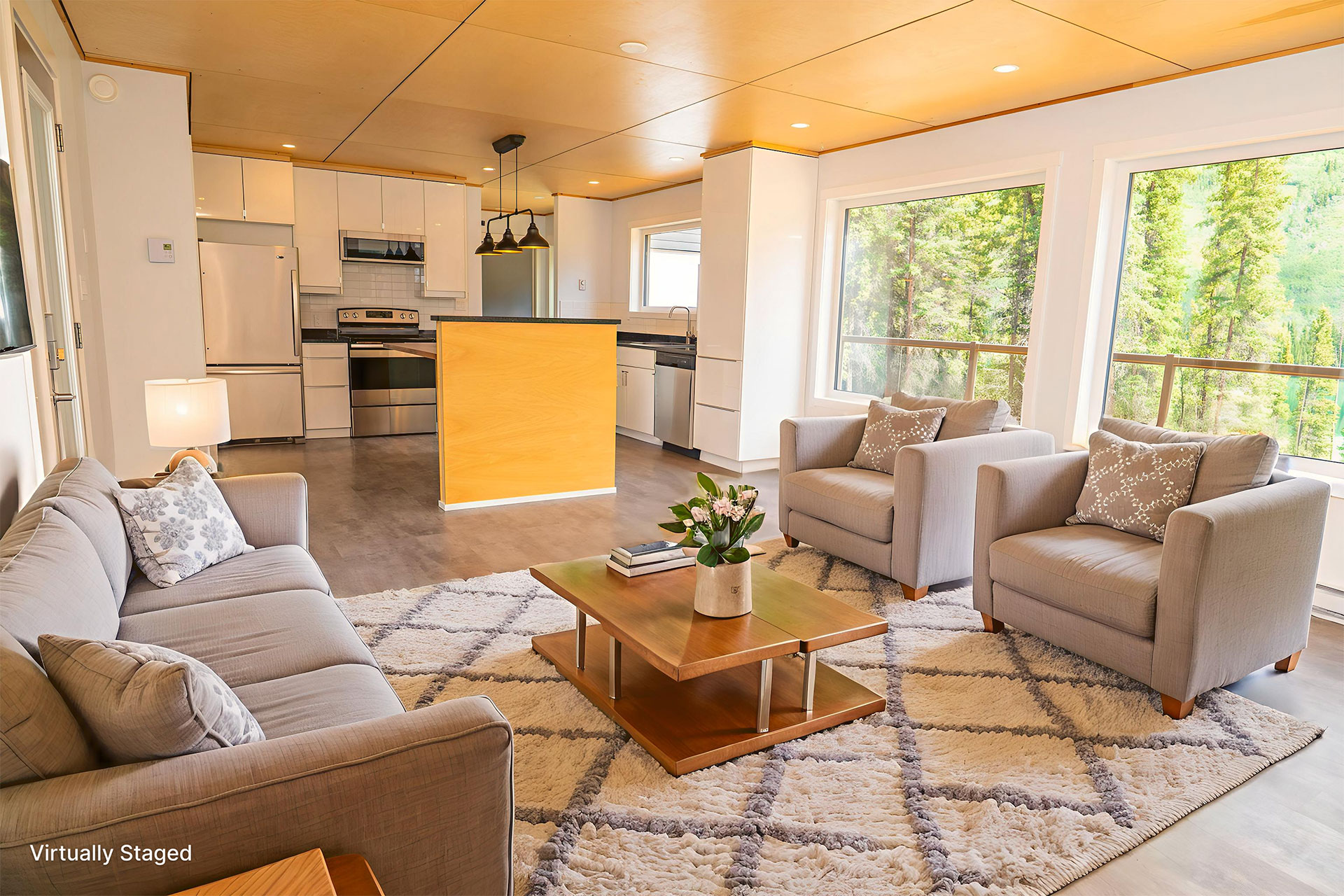 Enjoy solitude only 45 minutes from Whitehorse. Clean Scandinavian architecture overlooking Spirit Lake.